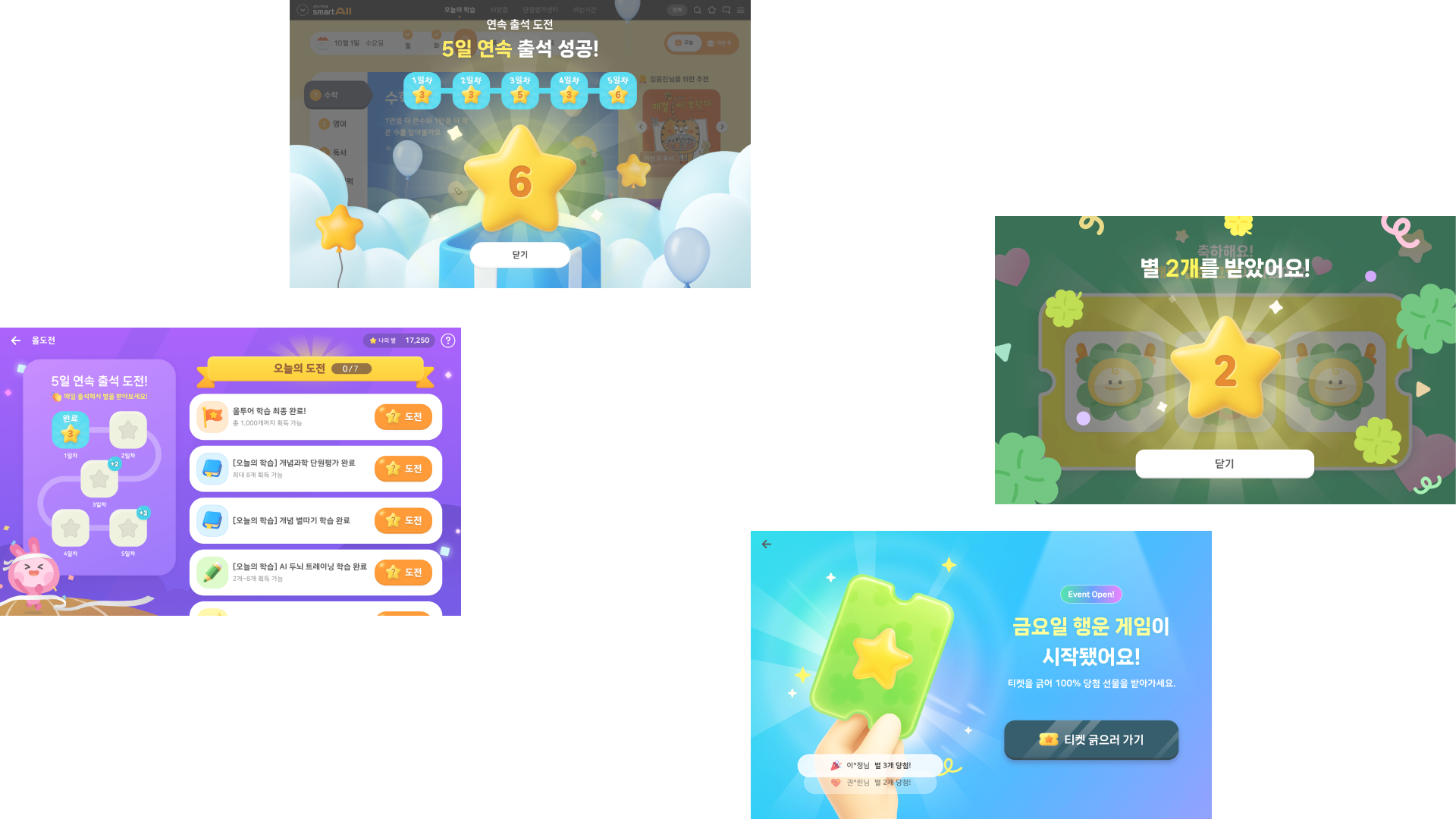 출석을 응원하는 별 보상금요일 행운 게임,