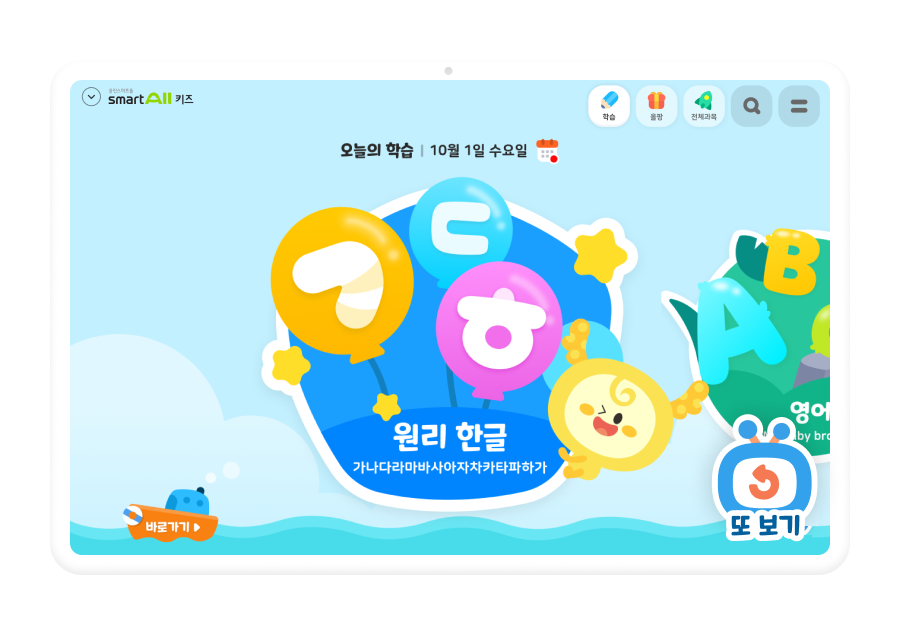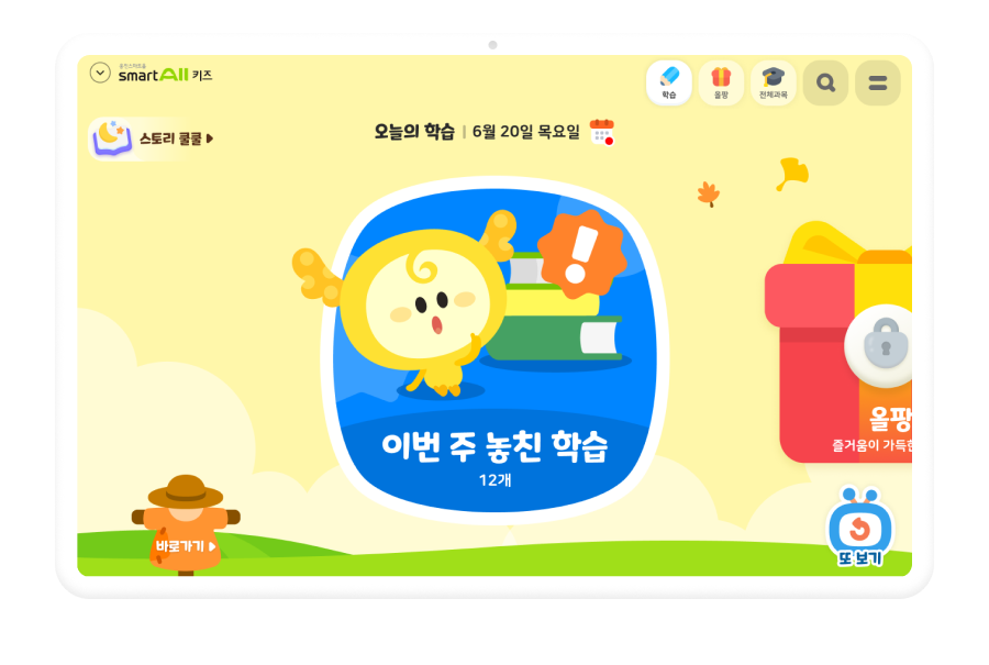 오늘의 학습 콘텐츠를 콕콕 보여주니,