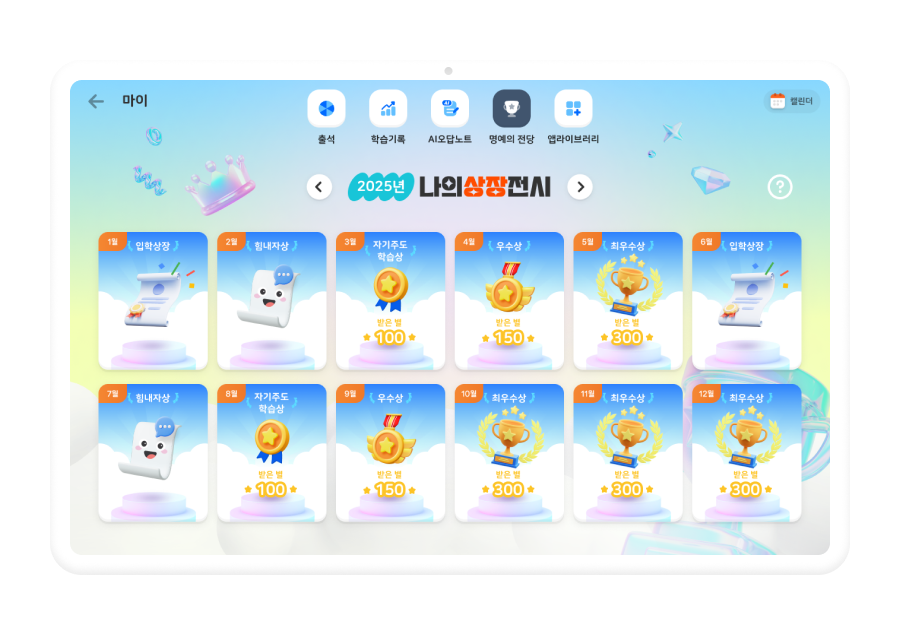 매달 받은 상장이 명예의 전당에!