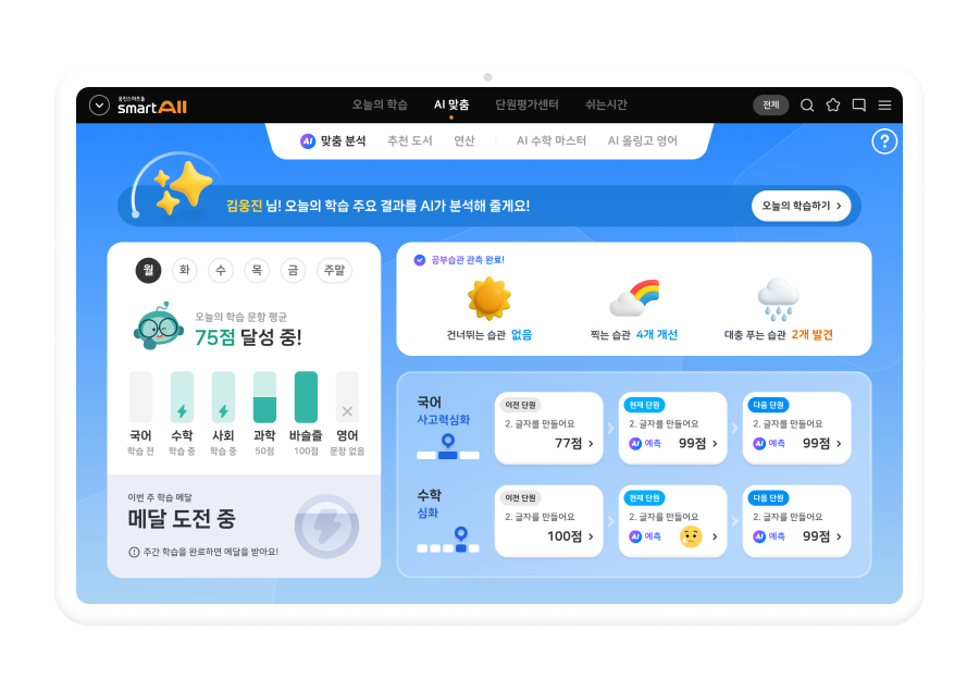 AI가 학습 습관을 분석강점과 보완점을 알려주고,