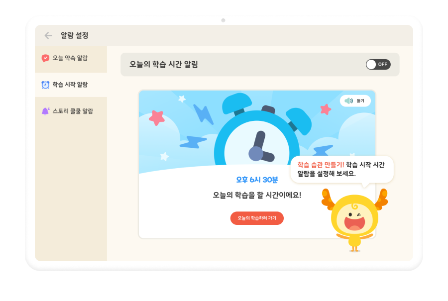 학습 시작 알람 으로 공부 습관 착착!